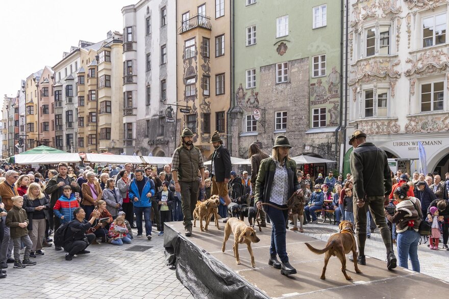 Thomas Hackl und Klaus Plank verwöhnten die Gäste mit Wildspezialitäten, und Jagdhunde begeisterten das Publikum mit Vorführungen unter der Leitung von Hans Peter Haas. Eine Modenschau unter dem Goldenen Dachl präsentierte Trachtenmode von Astri Moden, Heu & Stroh und Gössl. Ergänzt wurde das Angebot durch traditionelles Handwerk und Produkte für Jagd und Naturfreunde.
